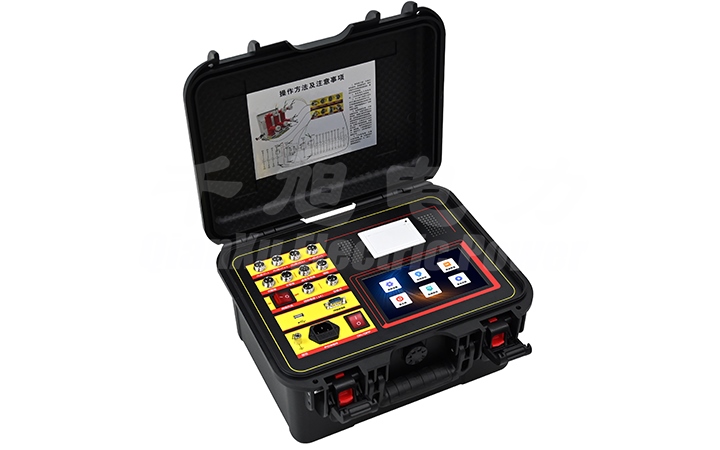 3、机内集成式操作电源,无须现场二次电源,使用方便快捷。可提供DC20~270V可调电源,电流20A。具有短路保护功能,如发生短路现象,1ms停止电压电流输出,发出滴滴报警声响,提示操作人员检查线路。双回路电源设计,如合闸或分闸控制回路中的一路损坏,用另一路也可测试合闸和分闸。